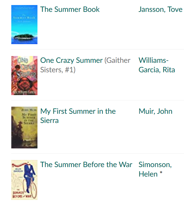ReplyDeleteBarbara Kingsolver is a good choice. I like her work as well. And I had no idea there were so many books with the word summer in their titles.